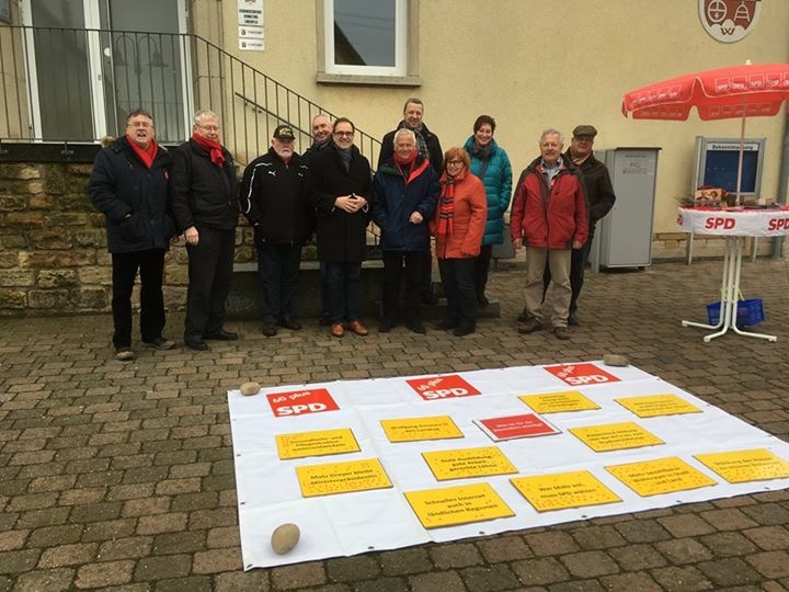 Am 2. März.2016 gab es von 14.00 - 16.00 Uhr auf dem Lingenfelder Rathausplatz ein Info-Stand der SPD. Die Mitglieder der AG60 plus des SPD Gemeindeverbands kamen über eine Bodenzeitung mit der Bevölkerung in Kontakt und warben um Stimmen für die Landtagswahl am 13. März 2016.