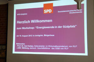 Unter dem Thema „Umsetzung der Energiewende in der Südpfalz“ hat die SPD-Südpfalz am 18.08.2012 ihre Kommunalpolitiker aus dem Landkreis GER zu einem Workshop nach Jockgrim eingeladen.