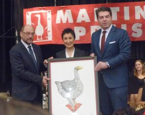 Der Laudator Martin Schulz würdigte die Preisträgerin als eine herausragende Persönlichkeit, die sich für die Grundwerte in der Gesellschaft einsetze und für den Geist der Toleranz, des Respekts und des Miteinanders in der Gesellschaft stehe. Es bestünde die Gefahr, dass dieser Geist durch rechtpopulistische Parteien zurückgedrängt werde, sagt Schulz. Schulz lobt Demirkan als eine Persönlichkeit, die ihre Stimme erhebe und den Finger in die Wunde lege.